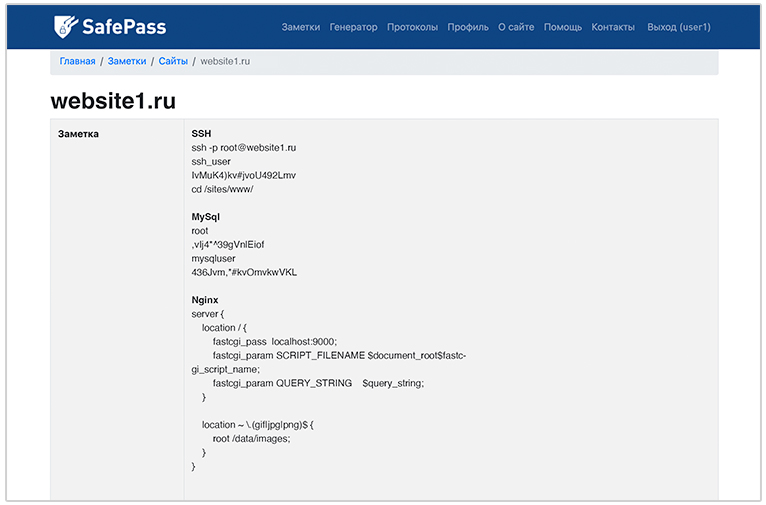 В SafePass можно хранить длинные форматированные html-тексты объемом до 20 000 символов. Это могут быть списки доступов к серверам, их IP-адреса, SSH-ключи, статические и динамические ключи, токены, настройки серверов, окружения, баз данных, списки и группы пользователей, пути к важным файлам, повторяющиеся команды.