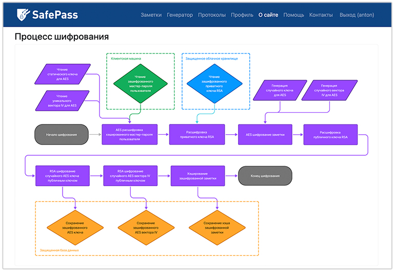 Все данные максимально защищены при помощи гибридной системы шифрования, совмещающей преимущества криптосистемы RSA с открытым ключом с производительностью симметричной криптосистемы AES. Подробнее о шифровании и мерах безопасности SafePass можно прочитать на странице «Безопасность».